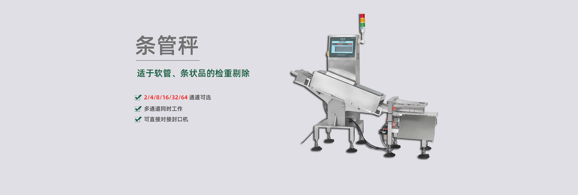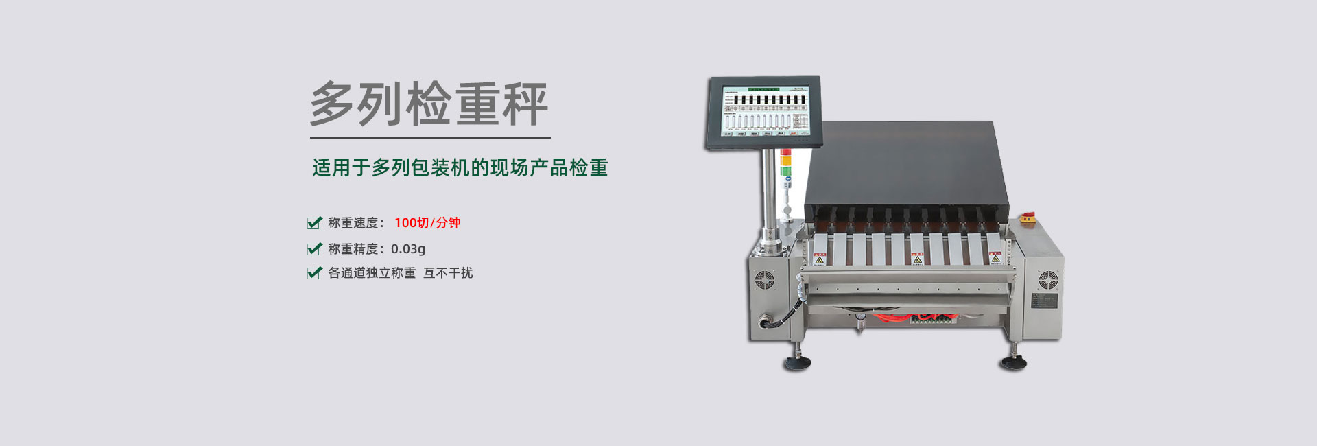 擁有各種剔除方案的專利,包括多列稱重結(jié)構(gòu)的剔除裝置,可杜絕不合格品誤通過(guò),準(zhǔn)確剔除各種高速、超薄、片狀、易碎,軟包、空包等物品,包括多列高速產(chǎn)品。